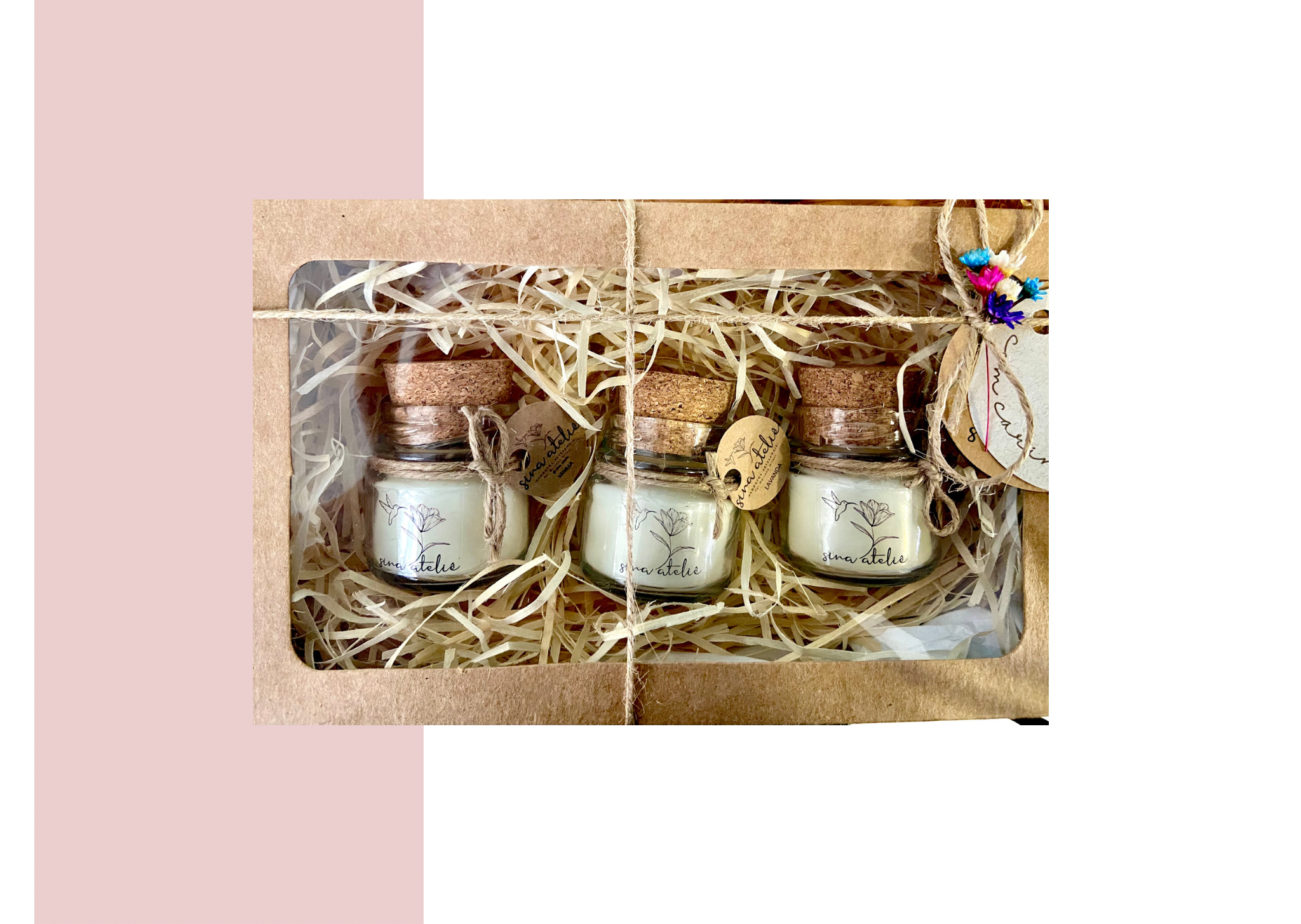 Kit mini vela Aromática com 3 velas de 40g cada em uma linda embalagem 🤍