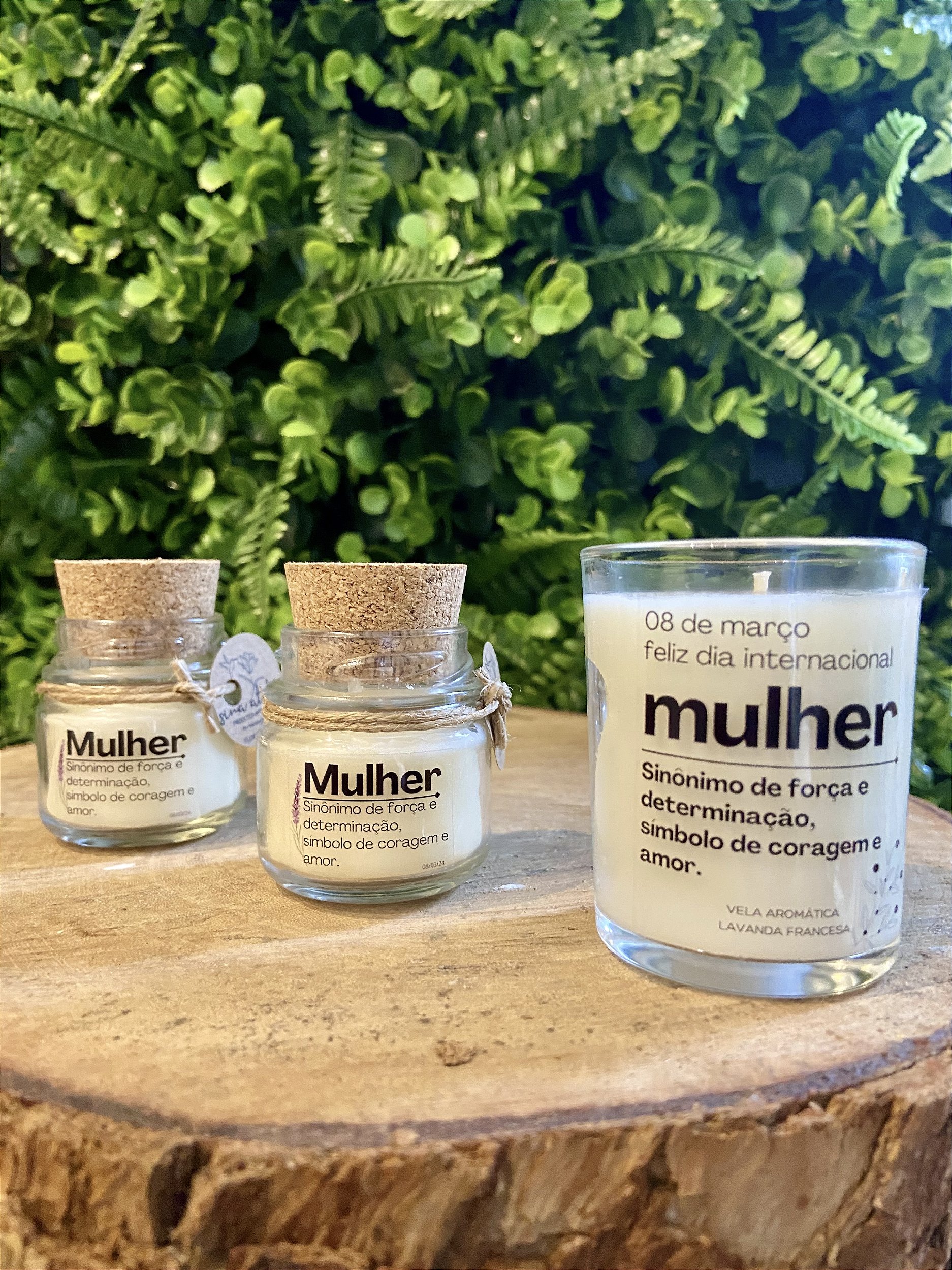 Composição: Blend de ceras naturais (coco, arroz e palma), Pavio de Algodão e Essência Premium